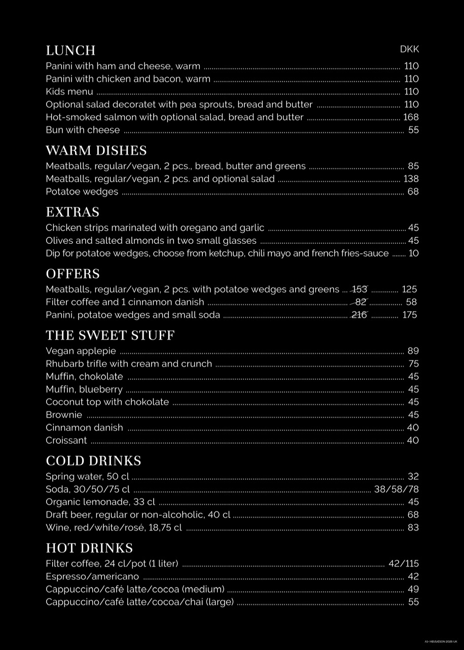 Hos os kan du både spise i vores hyggelige café og booke festlige begivenheder i vores indbydende rammer.
